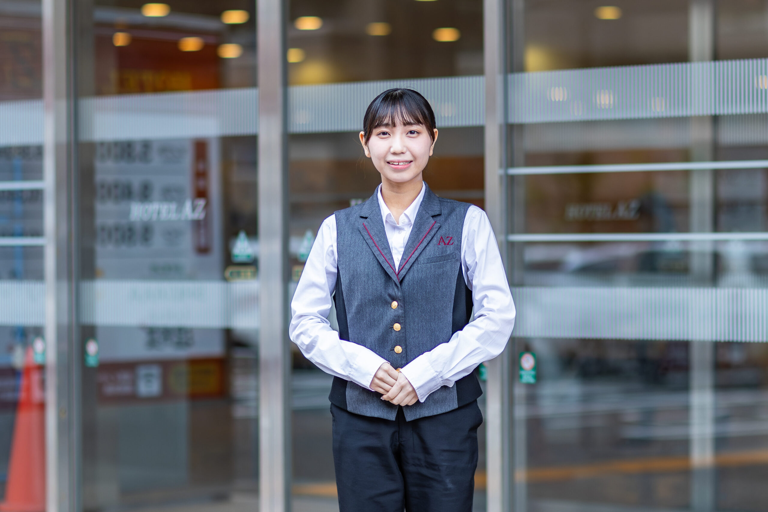 福岡県出身。大学では教育学や臨床心理学を中心に学ぶ。ホテル業界で働きたいという思いと、アメイズの経営理念への強い共感から、2025年4月に入社。現在は、新卒で入社した先輩店長のもとで、店舗運営の基礎から幅広く経験を積んでいる。